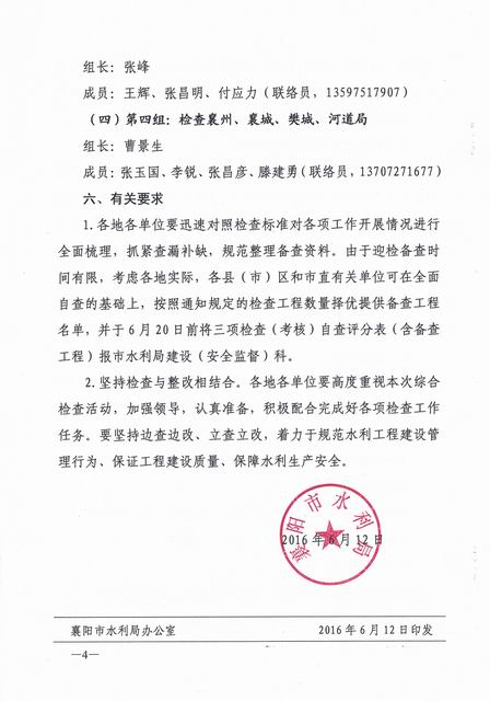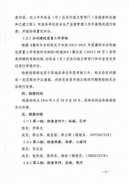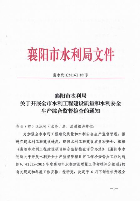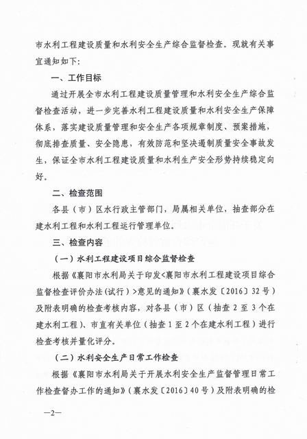 襄阳市水利局关于开展全市水利工程建设质量和水利安全生产综合监督检查的通知
