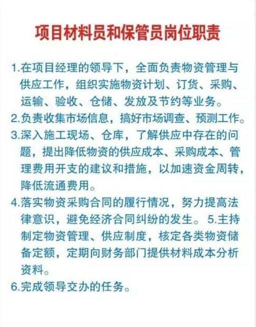 项目部全套上墙岗位职责表