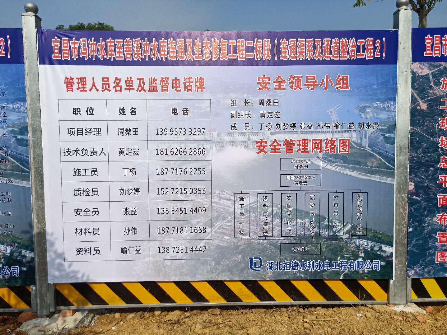 2020年9月8宜昌市冯冲水库至善溪冲水库连通及生态修复工程二标段(连通渠系及通道整治工程2)项目举行开工仪式,公司汪总、项目经理:周桑田、技术负责人:黄定宏、安全员:张益、施工员:丁杨、质检员:刘梦婷、材料员:孙伟、资料员:喻仁益等全程参加项目开工仪式。