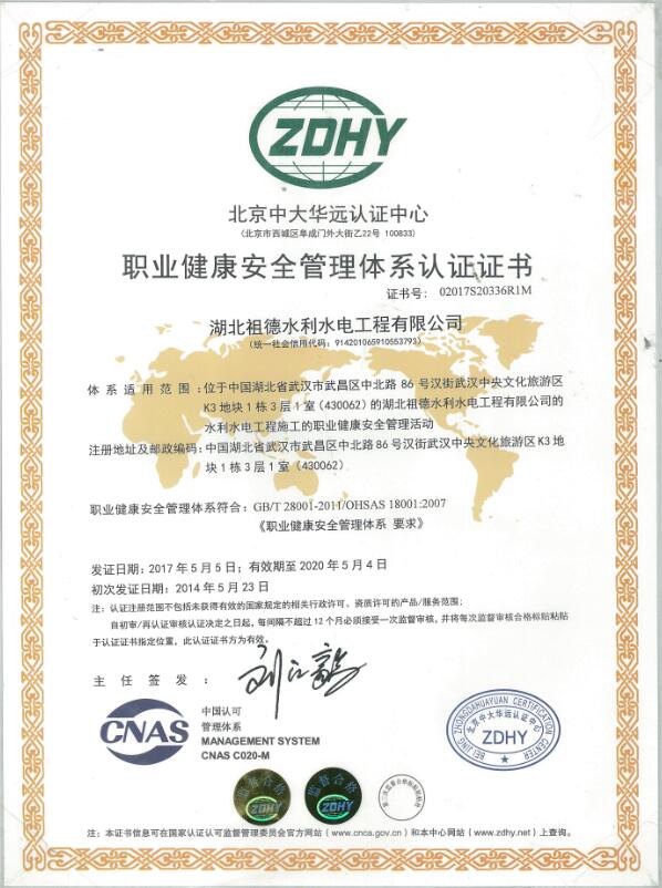 职业健康安全管理体系认证